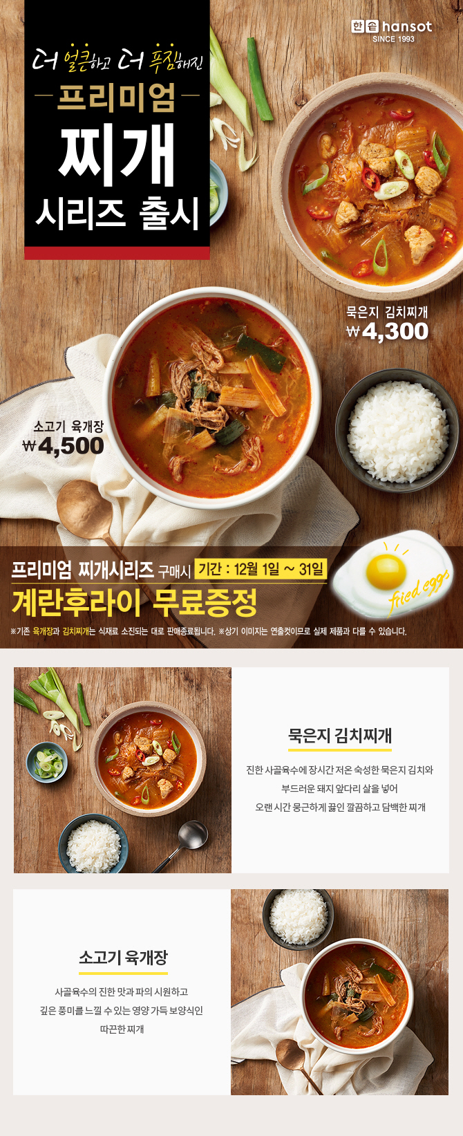 프리미엄 찌개 시리즈 구매시 계란후라이 무료 증정!